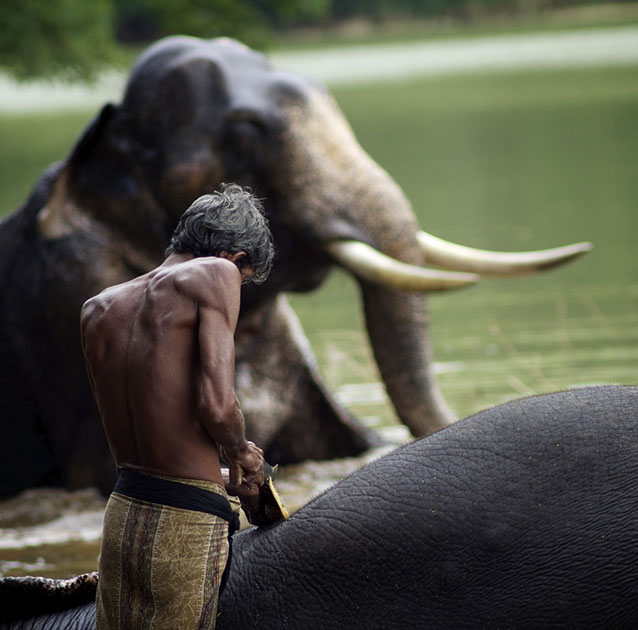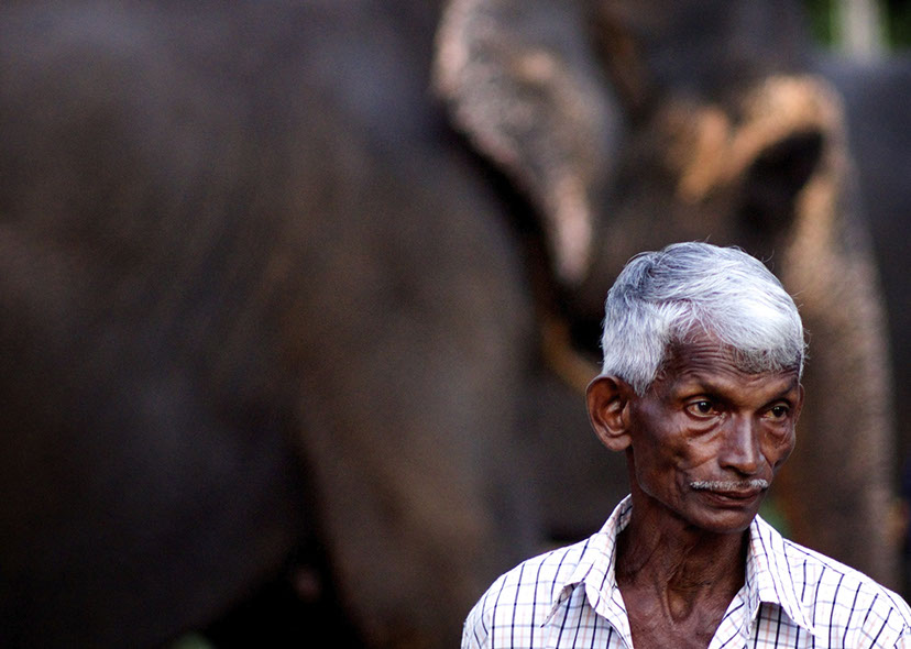 Sri Lanka: The face of a man who has worked with this elephant since he was a boy, and his father before him was the mahout of this same elephant.