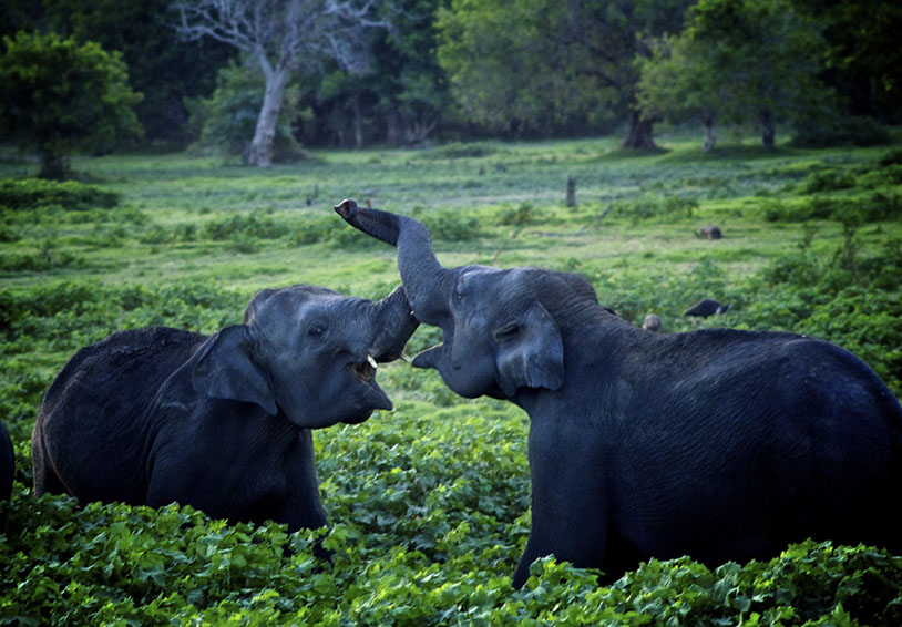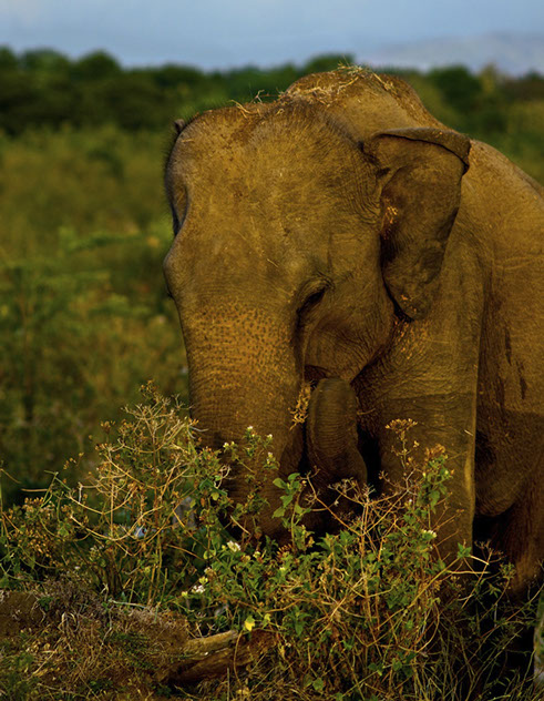 Sri Lanka. National Parks hold some wild elephants. They still have to compete with cattle to survive as the cattle are allowed to forage in the parks.