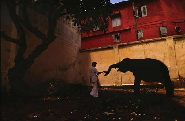 In this Nepalese mahout home the young animals wander around, although chained. The children are brought up with these beasts in a manner similar to our growing up with our pets.